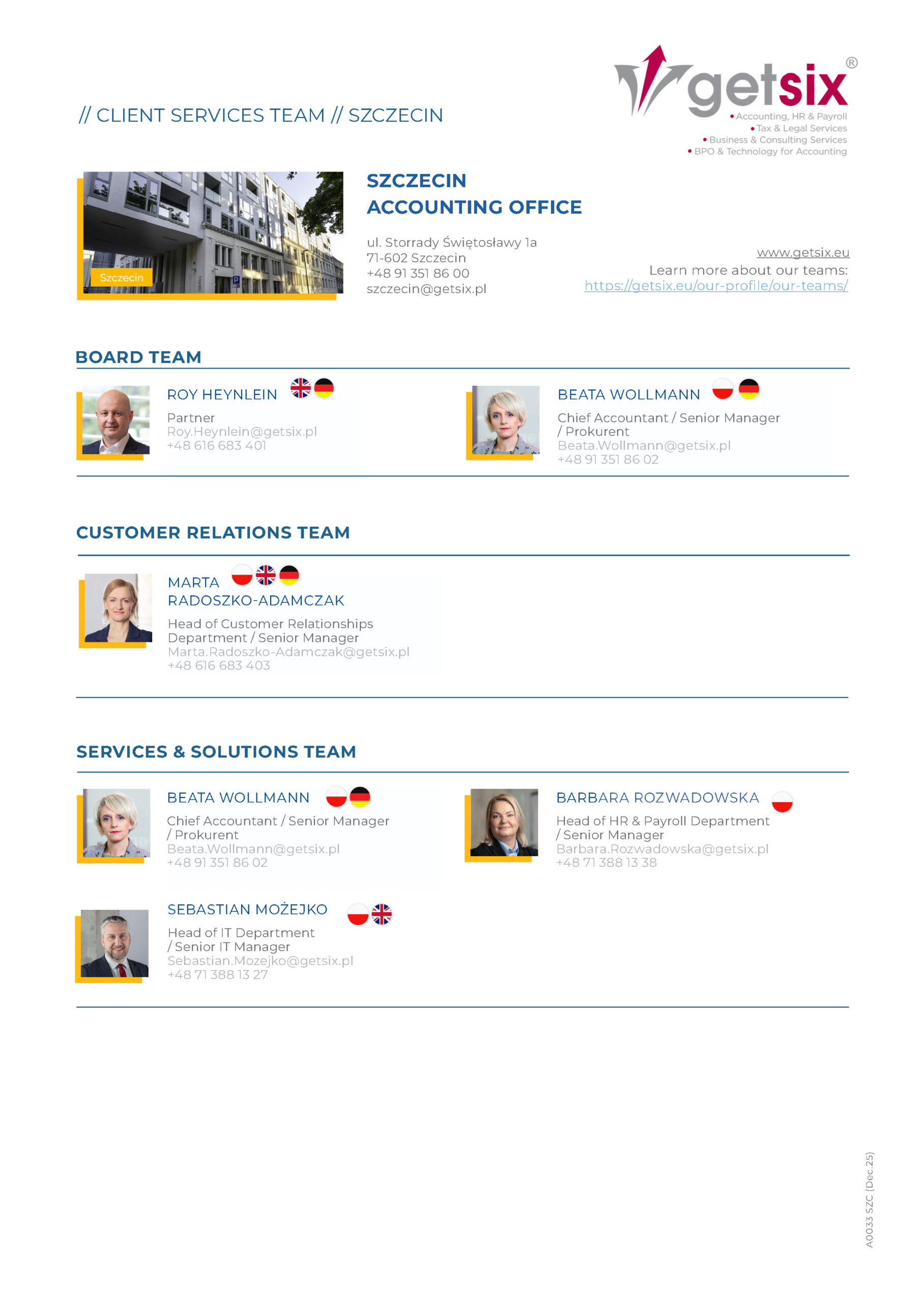 Wenden Sie sich bitte an Ihren Ansprechpartner für Buchhaltung, HR, Personalabrechnung und Steuerberatung in Polen, Sie werden umgehend kontaktiert.