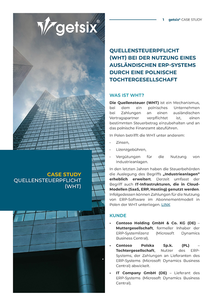 Quellensteuerpflicht (WHT) bei der Nutzung eines ausländischen ERP-Systems durch eine polnische Tochtergesellschaft